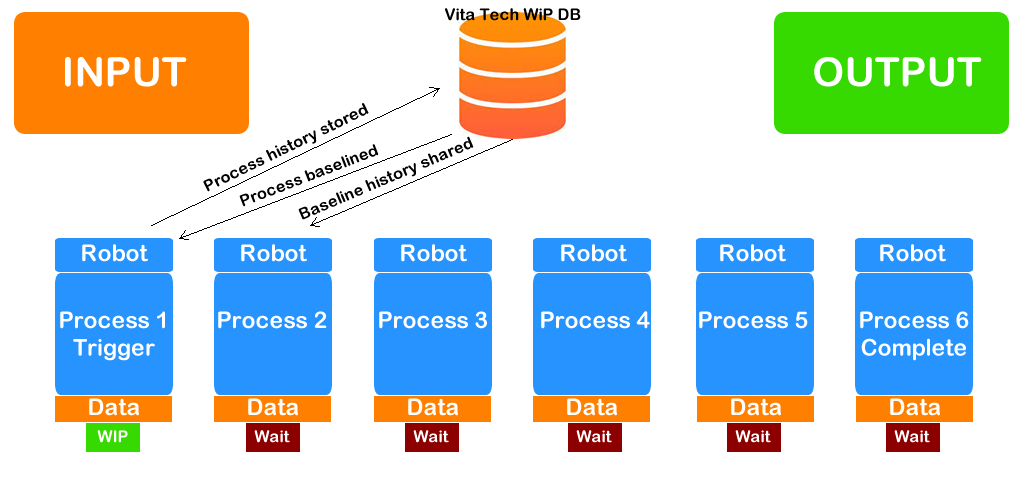 Work processes can be arduous and repetitive, consisting of labour-oriented workflows across different activity streams. Specific processes can be targeted with contemporary robotics for efficient output to a particular segment of the overall workflow. With network technologies, highly integrated partial work-in-process segments can be automated with targeted efficiency gains. These tasks can be compartmentalized for general orientation of processes. These processes need not be heavy manufacturing based, but for true Work-in-Process Automation, tangible processes are necessary.